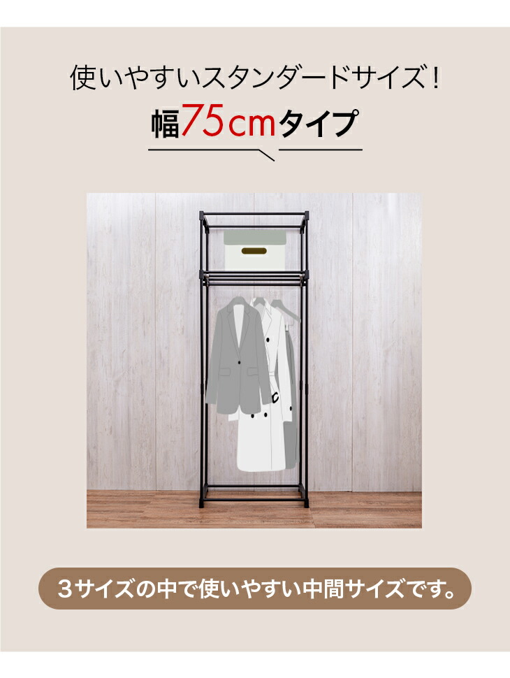 カバー付きクローゼットハンガー 幅75cm ファスナー 不織布カバー カバー付き ハンガーラック スリム ラック クローゼット 収納 洋服 スタンド 奥行46