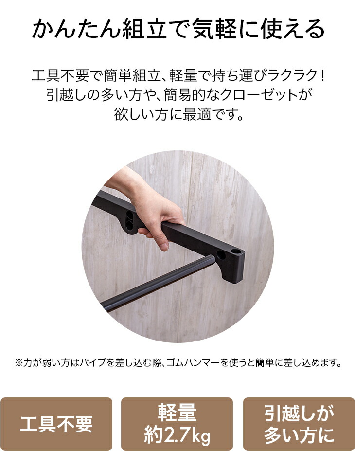 ●耐荷重量/ハンガー部:約3kg、棚部:約5kg