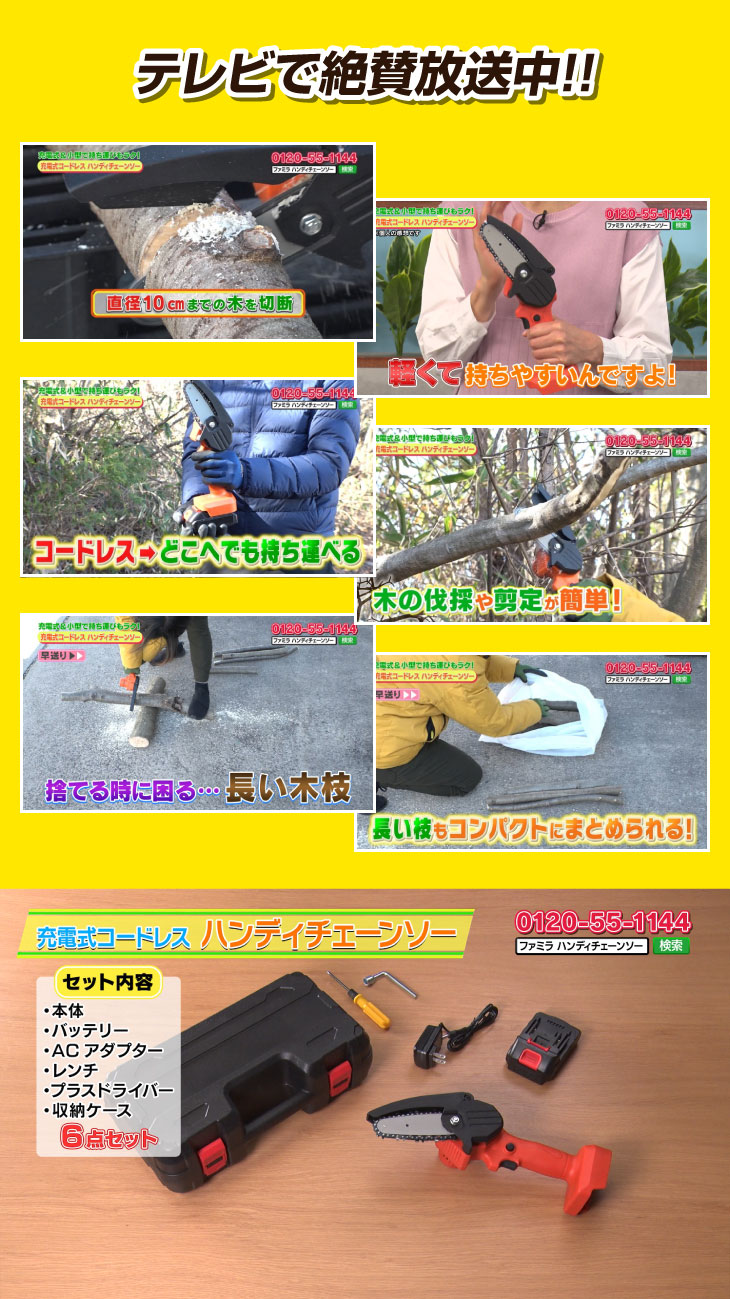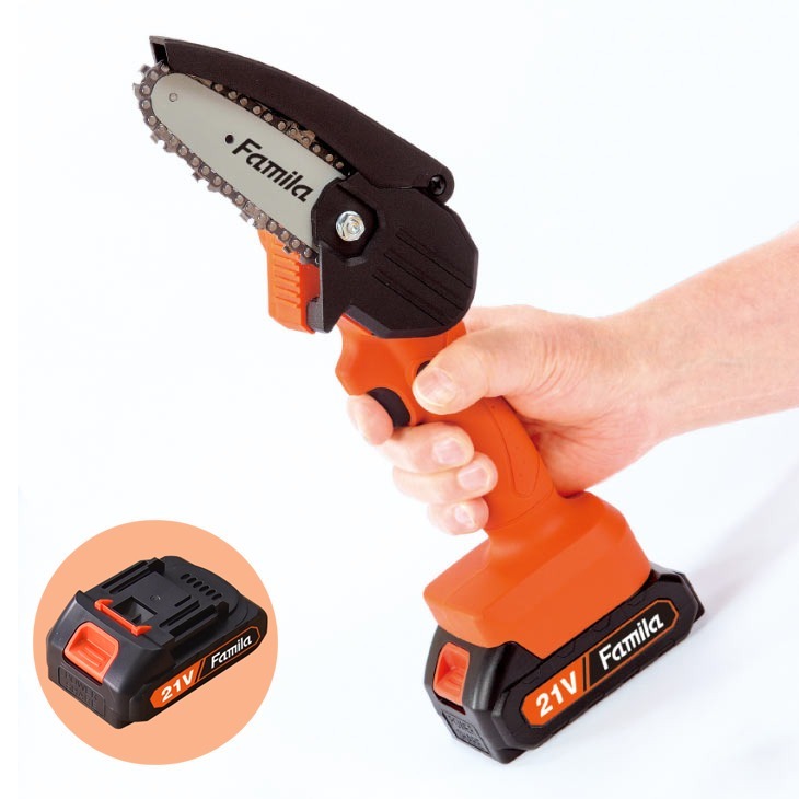 ファミラ ハンディチェーンソー 充電式コードレスハンディーチェーンソー 予備バッテリー付き