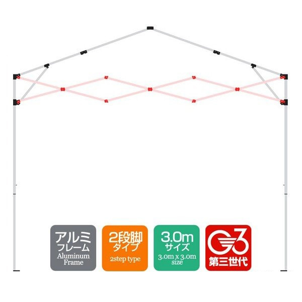 ワンタッチタープテント用部品 クロスバー連結セット/クロス柱セット(3.0m用) アルミ 3.0m 2段脚 対応