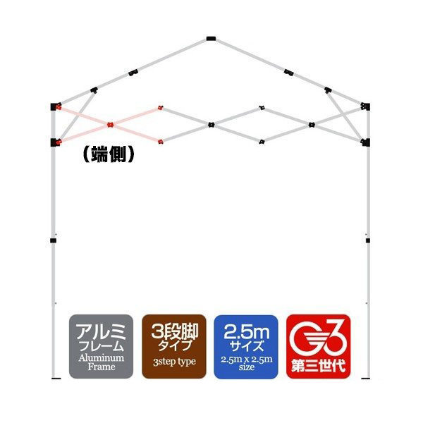 ワンタッチタープテント用部品 クロスバーエンドクロス/クロス柱/端側(2.5m用) アルミ 2.5m 3段脚 対応