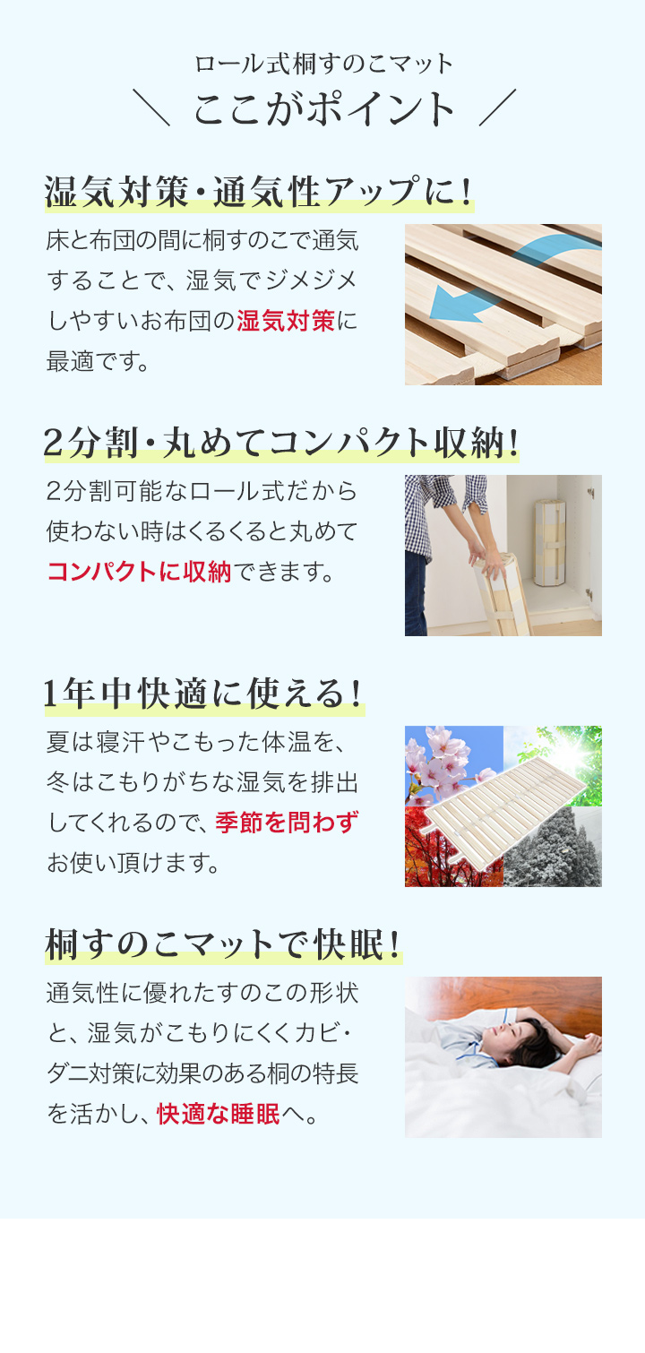 すのこマット ロール式 すのこベッド セミダブルベッド スノコ 桐 コンパクト 湿気対策 カビ対策 おすすめ 寝具 寝室 ベッドルーム 小さい 1年保証 送料無料