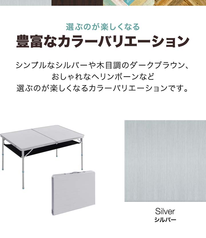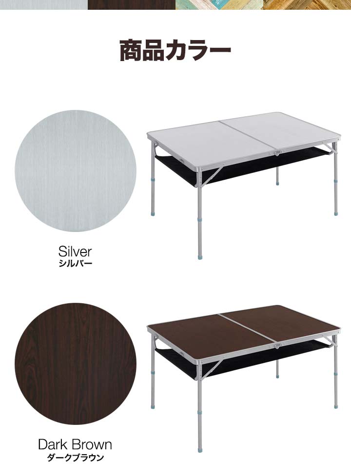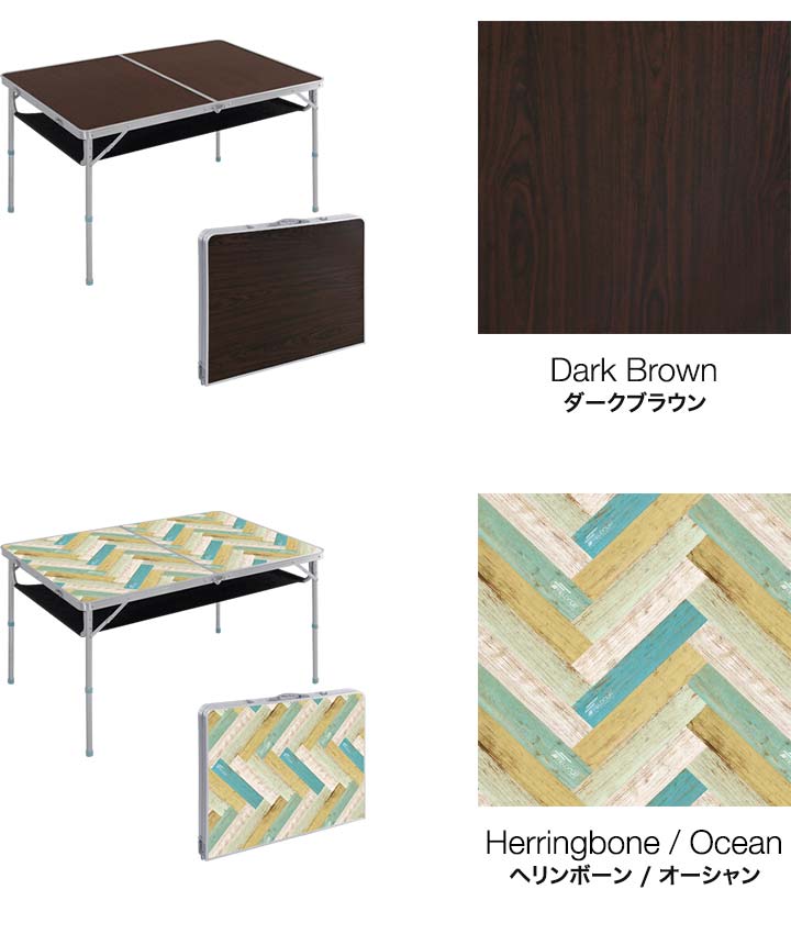 | サイズ: テーブル : (約)W120cm×D80cm×H70cm / 40cm 折りたたみ時 : (約)W80cm×D60cm×H7cm |