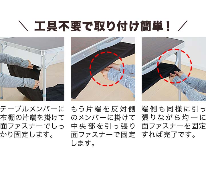 | 耐荷重: ・テーブル : 50kg ・布棚 : 5kg |