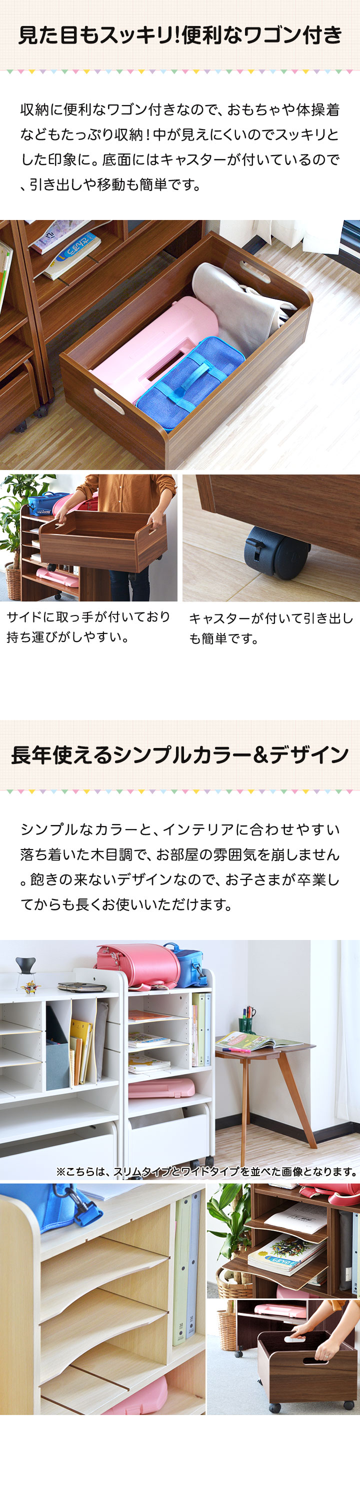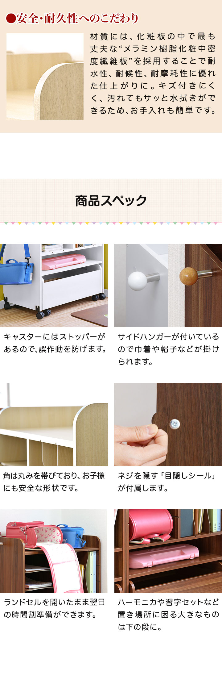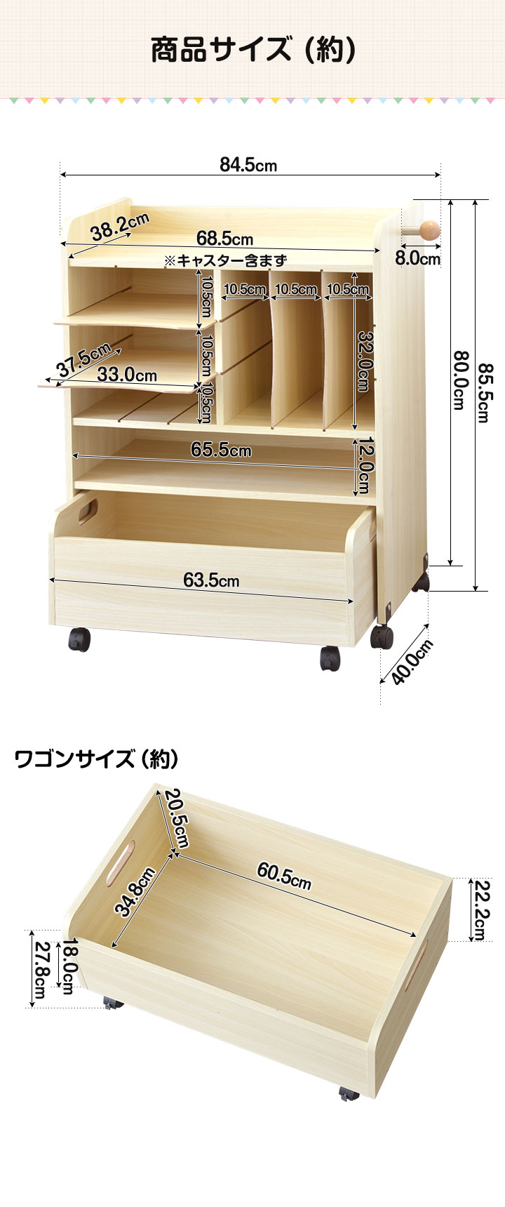| 付属品: 可動棚 4枚 / ワゴン 1個 / サイドハンガー 2個 / キャスター 8個 / ネジ隠しシール 28枚 |