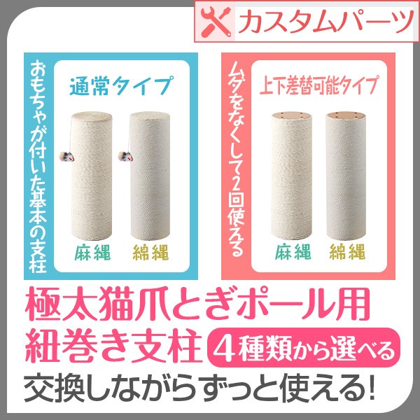 | 特記事項: こちらの商品は極太猫爪とぎポールをお持ちの方用のパーツ販売用ページとなります。 極太猫爪とぎポール本体は別売りとなりますのでご注意下さい。 こちらの商品は新型です(天面・底面プレートの色がブラックです)。 ご購入の際は、お手持ちの本体支柱の底面プレートが同じ色であることをご確認下さい。 |