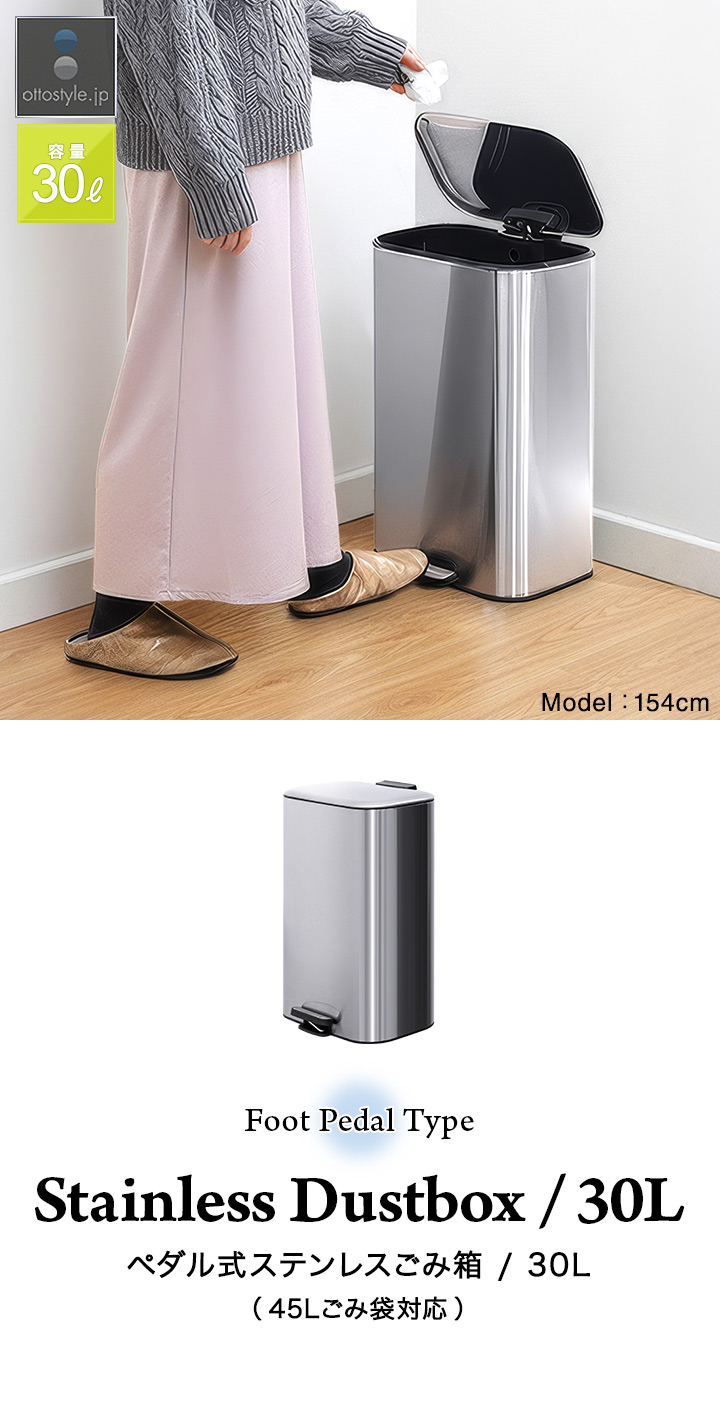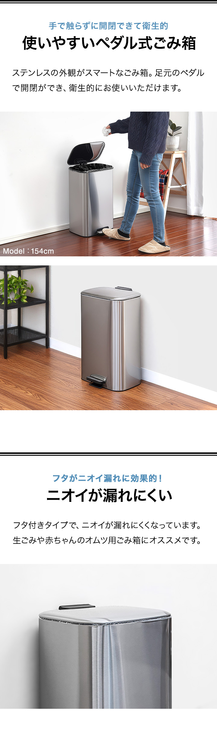 ゴミ箱 30L ペダル ふた付き ペダル開閉式 縦型 ステンレス スチール ゆっくり静かにフタが閉まる ゴミ袋が見えない 30リットル 1年保証 送料無料
