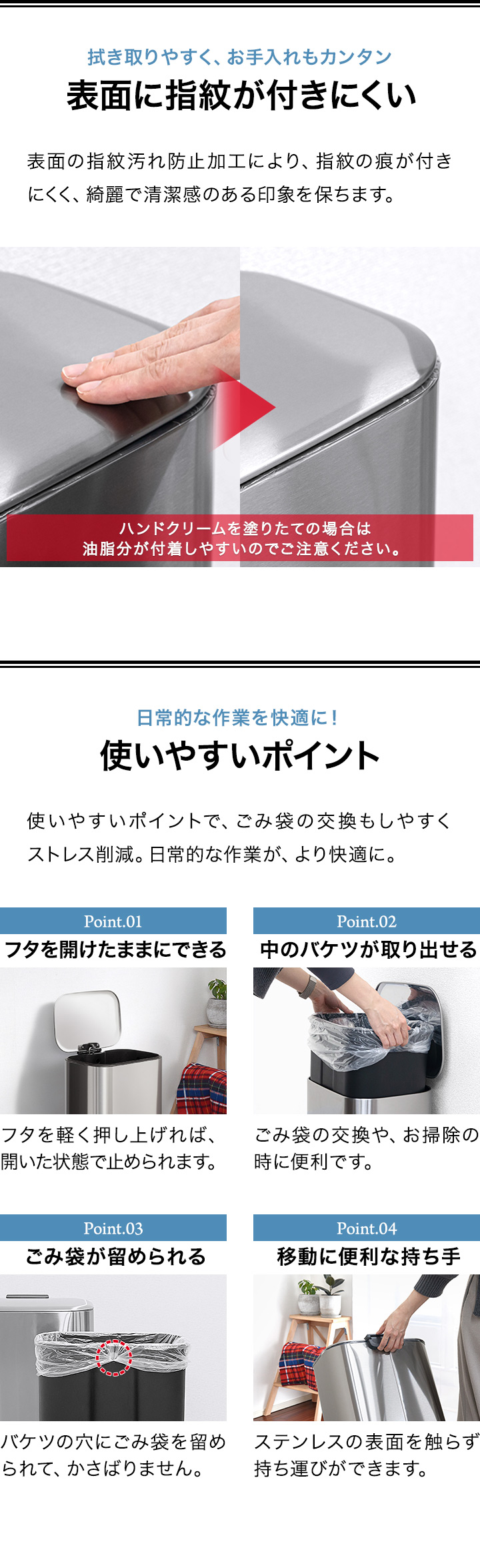 フタ付きタイプで、ニオイが漏れにくくなっています。生ごみや赤ちゃんのオムツ用ごみ箱にオススメです。