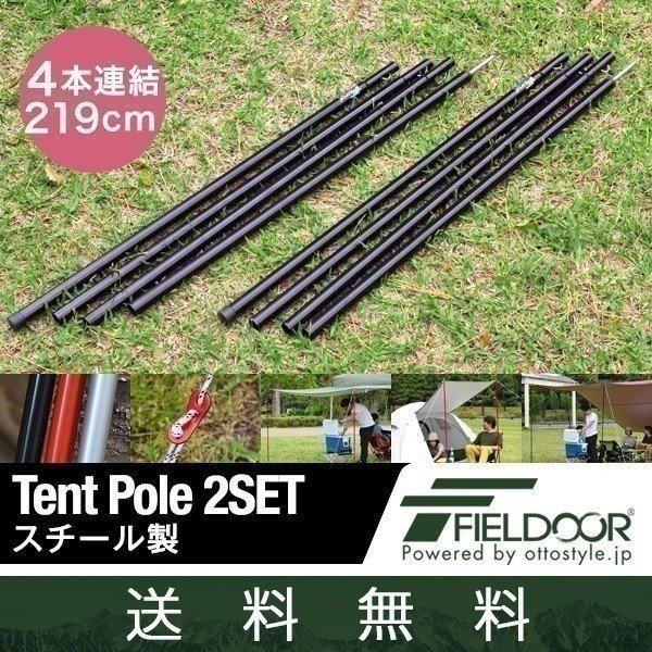 テントポール サブポール タープポール キャノピー 用 スチール製 ポール 2本セット 4本連結 219cm 直径 16mm 分割式 テント タープ FIELDOOR 1年保証 送料無料