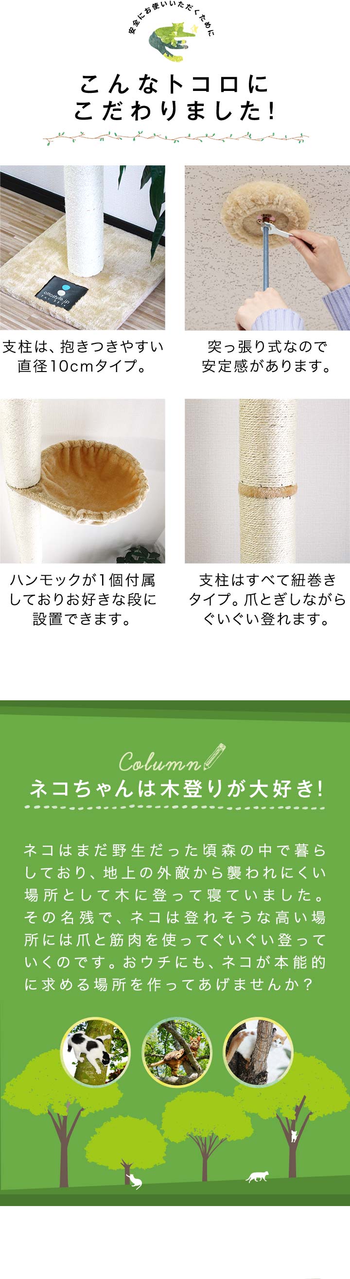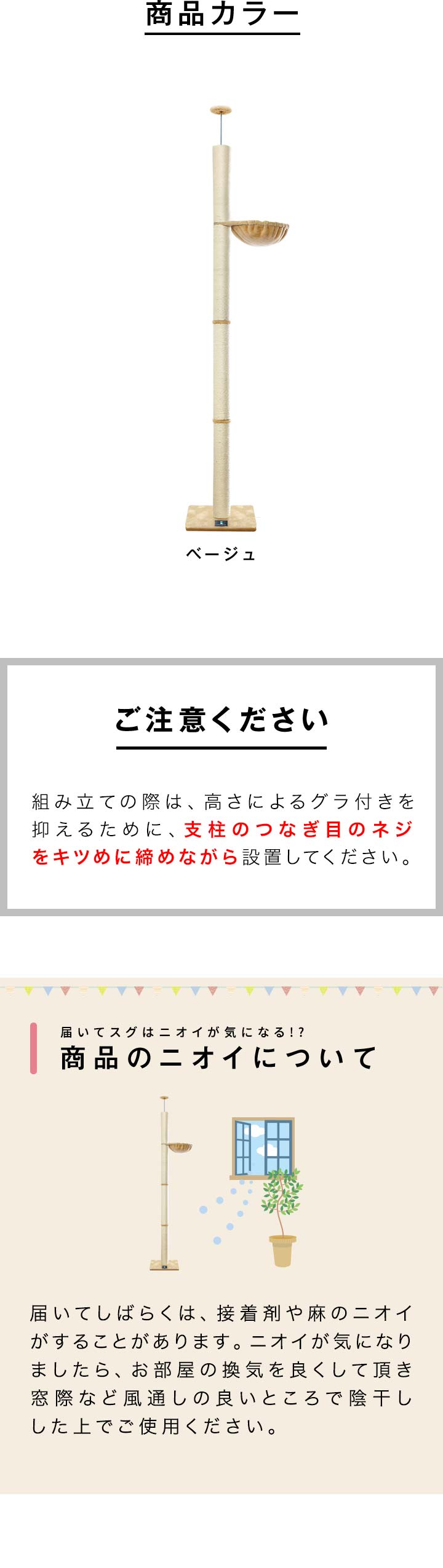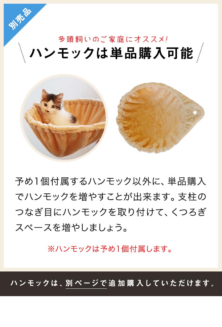| 耐荷重: ・木登りキャットポール本体…(約)12kg ・ハンモック…(約)6kg |