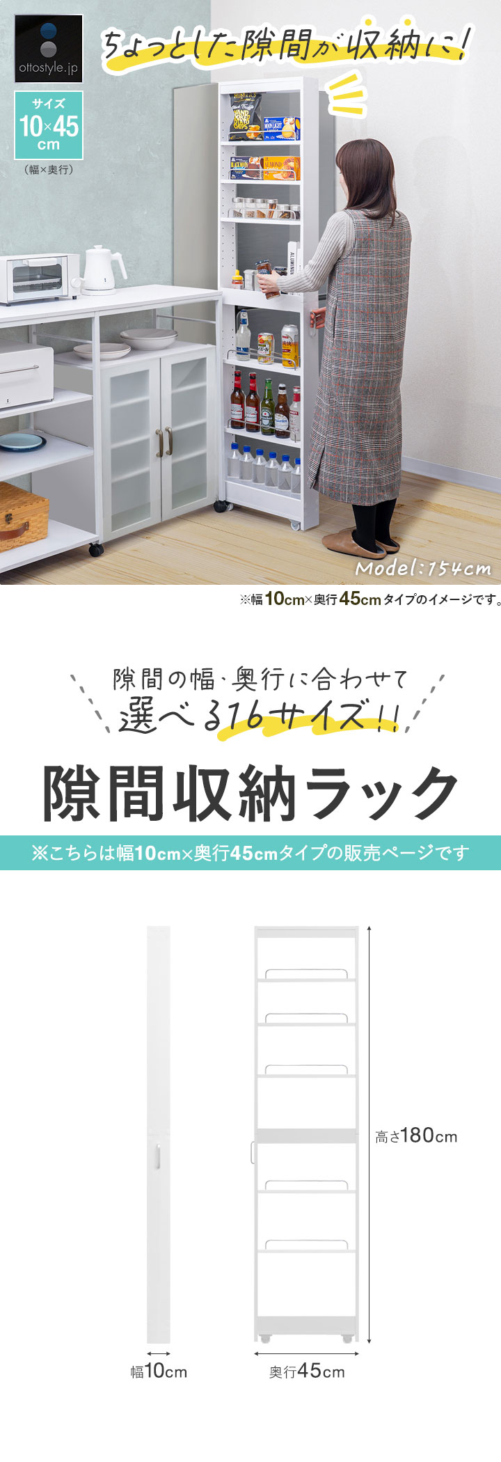 | サイズ: (約)幅10cm×奥行45cm(46cm※ハンドル含む)×高さ180cm |