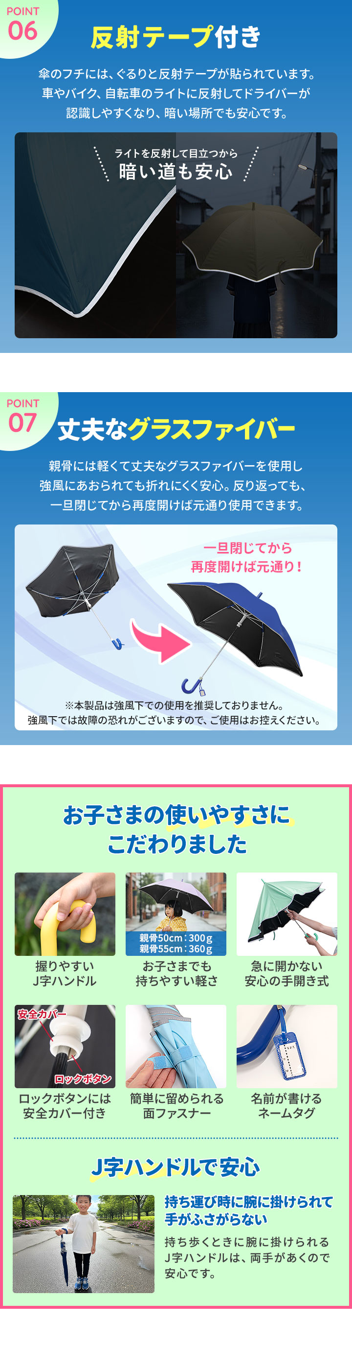 | 重量: 【親骨50cm(6本骨)】:(約)300g 【親骨55cm(8本骨)】:(約)360g |