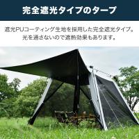 遮光PUコーティング生地を採用した完全遮光タイプのスクリーンテント。幅285cmのゆったり広々サイズでキャンプ時のリビングなど快適な空間を演出。4面メッシュで虫の侵入も防ぎます。