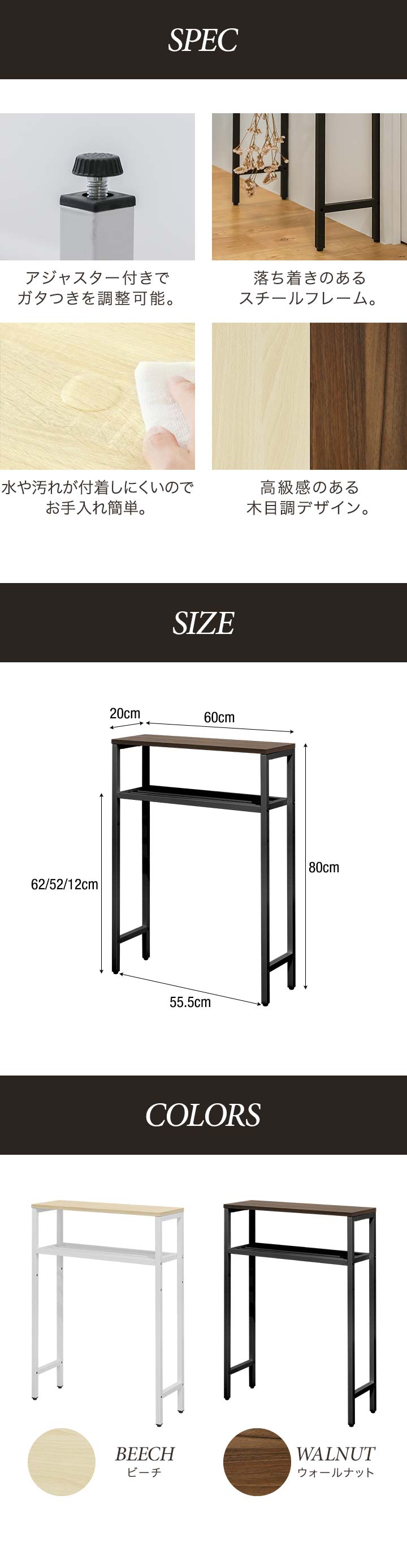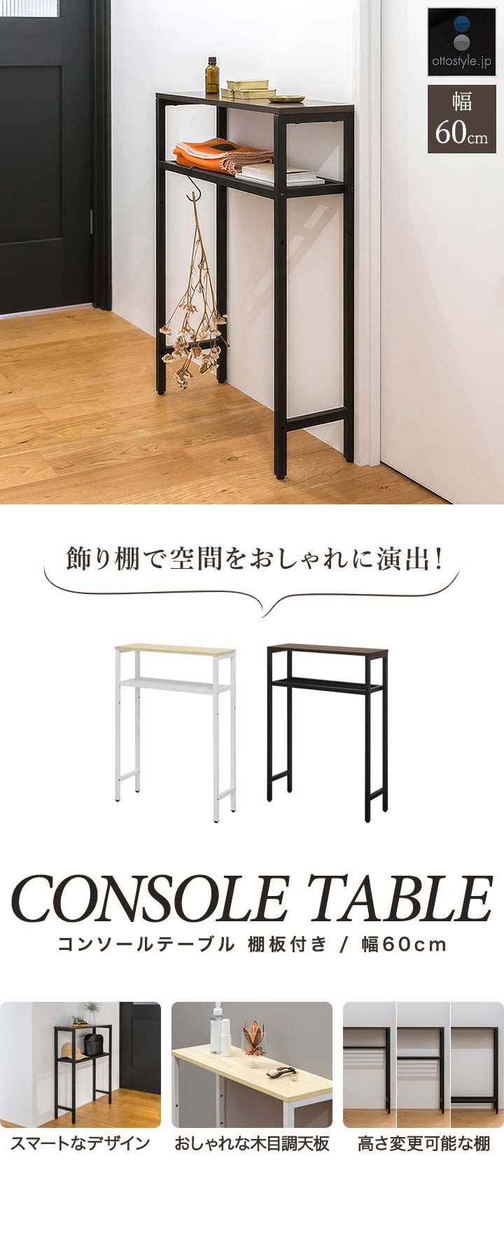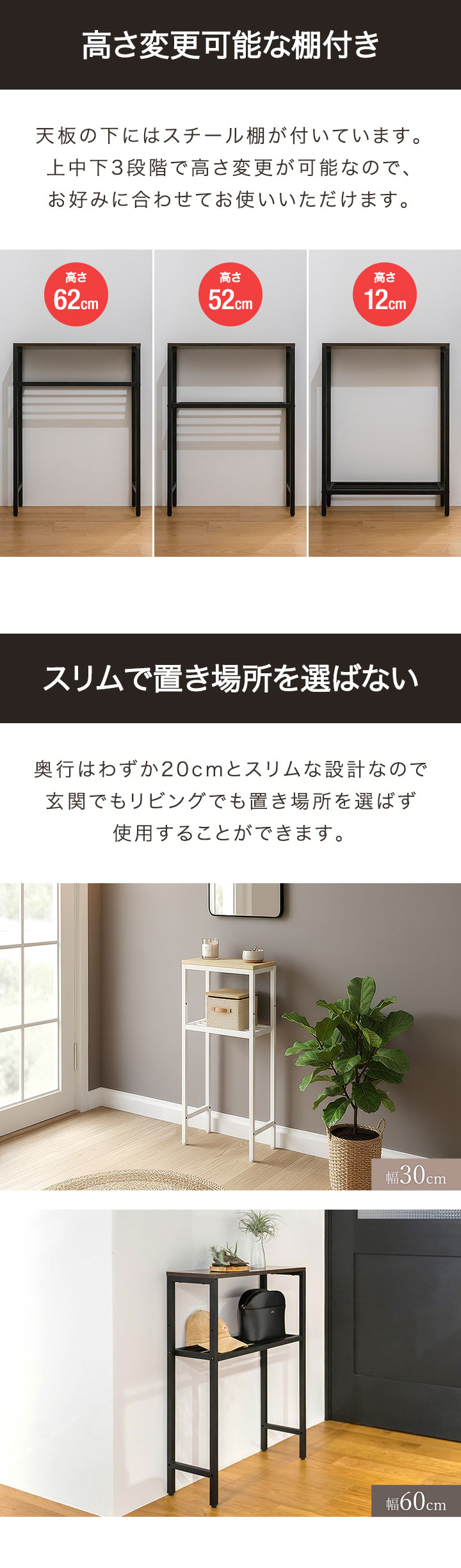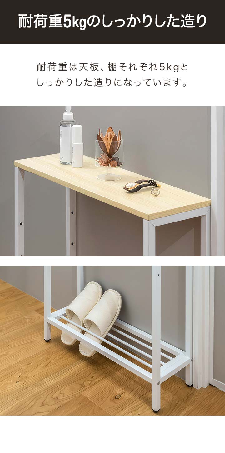 ヤフー1位 コンソールテーブル スリム 玄関 幅60cm×20cm 高さ80cm 中棚 高さ3段階 飾り棚 棚 廊下 玄関ラック 玄関テーブル 収納棚 送料無料