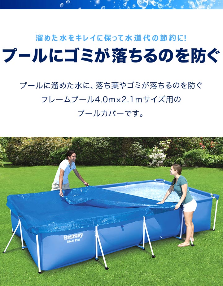 プールカバー Bestway フレームプール 4.0m×2.1mサイズ用 410x226cm プール専用 58107 ゴミ除け 虫よけ 節水 水道代の節約に 1年保証 送料無料