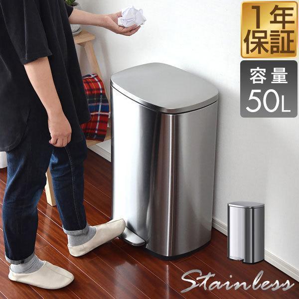 ゴミ箱 50L ペダル ふた付き ペダル開閉式 縦型 ステンレス ゆっくり静かにフタが閉まる ゴミ袋が見えない 50リットル ダストボックス ペール 1年保証 送料無料