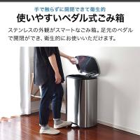 ステンレスの外観がスマートなごみ箱。足元のペダルで開閉ができ、衛生的にお使いいただけます。