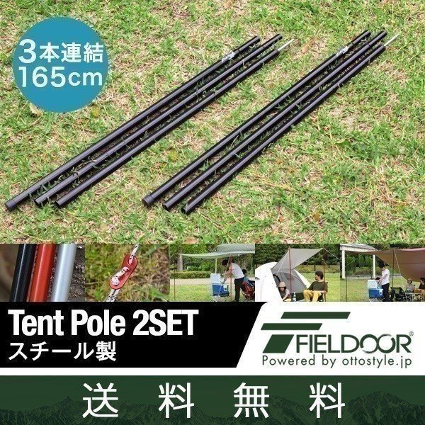 テントポール サブポール タープポール キャノピー 用 スチール製 ポール 2本セット 3本連結 165cm 直径 16mm 分割式 テント タープ FIELDOOR 1年保証 送料無料