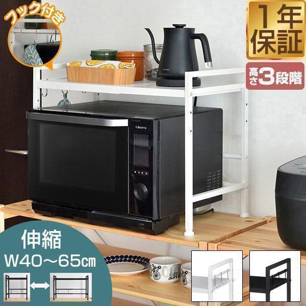 レンジ上ラック キッチンラック 伸縮 幅40〜65cm レンジ台 レンジ棚 卓上 棚 カウンター上 収納 調味料 シンプル おしゃれ 1年保証 送料無料