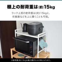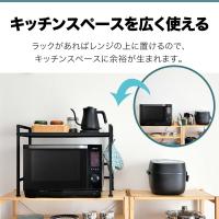 レンジの上を有効活用できるラックです。幅は(約)40〜65cmの間で伸縮することができ、置きたい場所や電子レンジに合わせてサイズを調節することができます。