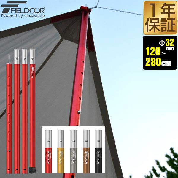 ポール アルミ製ポール 直径 32mm 高さ120-280cm 8段階 高さ調整 アルミ サブポール タープ ポール キャノピー 用 分割式 1年保証 送料無料