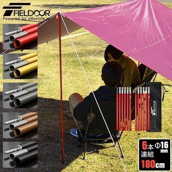テントポール アルミ 2本セット 6本連結 180cm 直径16mm 分割式 サブポール タープポール キャノピー ポール タープ テント キャンプ FIELDOO 1年保証 送料無料