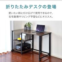 | サイズ: デスク展開時 : (約)幅120cm×奥行55cm×高さ71.5cm デスク収納時 : (約)幅60cm×奥行55cm×高さ71.5cm |