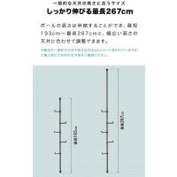 ポールの高さは伸縮することができ、最短193cm〜最長267cmと、幅広い高さの天井に合わせて調整できます。