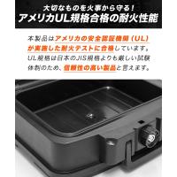 | 特記事項: 【耐火性能】 本製品はアメリカのUL規格(一般紙用耐火試験)に合格した製品です。炉内で30分間、約843℃に達するまで加熱した場合でも庫内の温度が約177℃以下に保たれます。 【防水性能】 本製品は水深1mの位置に24時間浸した場合でも庫内への水の浸入を防ぎます。 【鍵を紛失された場合】 有償にて再発行させていただきます。 |