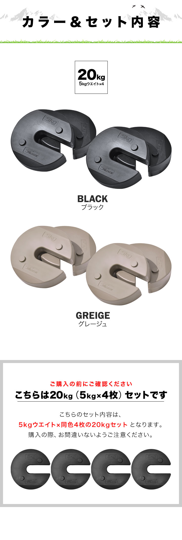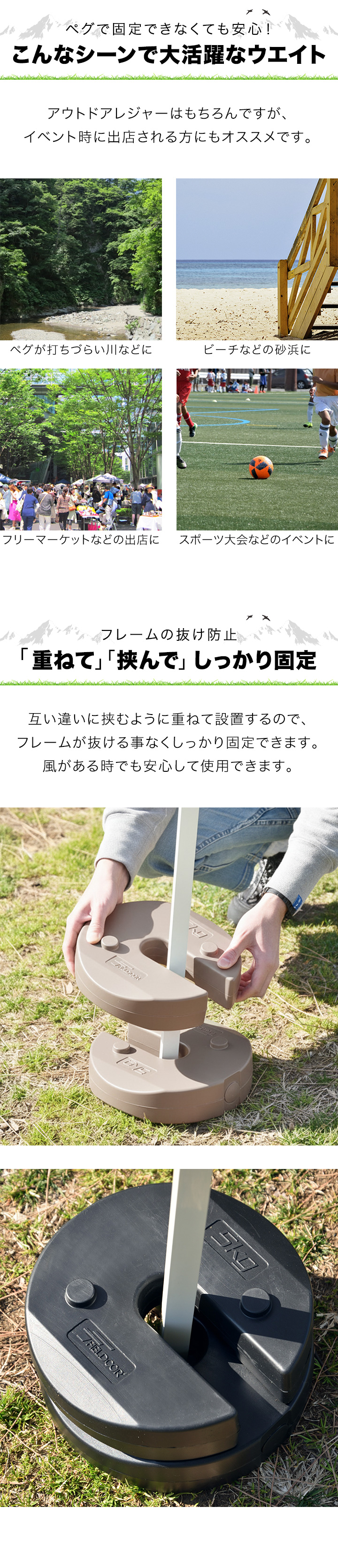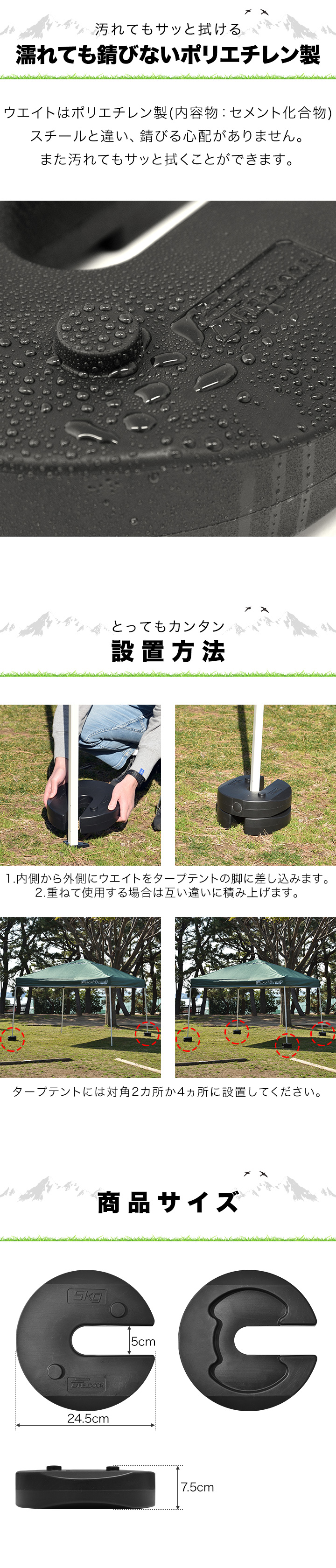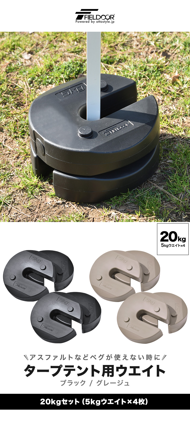 タープテント用ウエイト 5kg×4個セット 万能ウエイト テントウエイト 重り FIELDOOR 錘 おもり おもし 転倒防止 固定 風対策 安全対策 送料無料