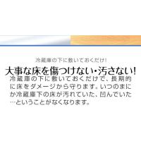 | 特記事項: ・ハサミやカッターでカットすることはできませんのでご自宅の冷蔵庫に合ったサイズを確認し、お買い求めください。 ・裏表はありません。 ・設置場所は、あらかじめ掃除を行ってから設置ください。 ・設置時、できるだけマットを床面で引きずらないようにしてください。床面が傷つくおそれがあります。 ・マットと床に液体が入り込んだ状態で長時間放置するとカビ、汚れ・腐食の原因になります。 ・掃除の際は水拭きをしてください。アルカリ、有機溶媒で拭くとマットが変形し、床材に影響を与えるおそれがありますので使用しないでください。 |