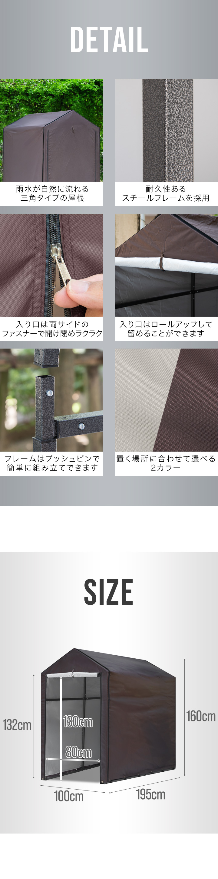 | サイズ: 組立時 : (約)100cm×195cm×160cm 入り口 : (約)80cm×130cm |