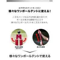 テント内のスペースを有効的に使えます。 また、タープ使用時に便利な取外しできる先端ピンも付属。