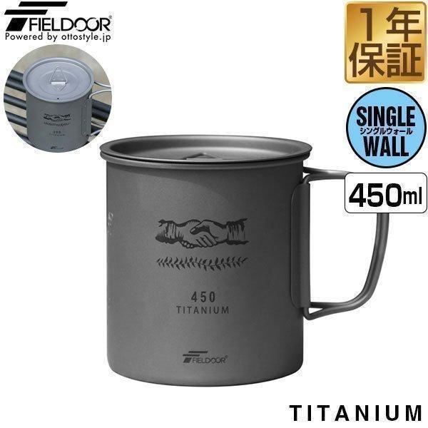 マグカップ アウトドア チタン ふた付 目盛り付き 軽量 キャンプ コップ 450ml チタンマグ シングルマグ シングルウォール 蓋 バーベキュー 1年保証 送料無料