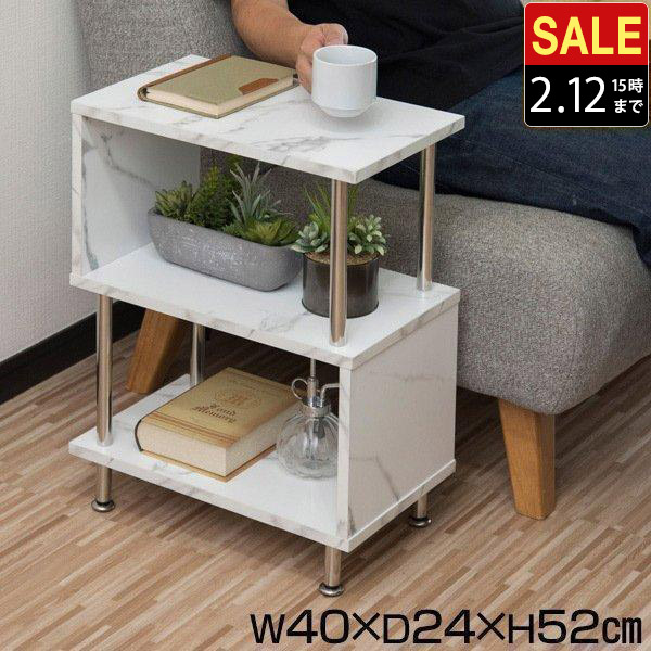 サイドテーブル 大理石 3段 サイドラック S字 幅40cm 収納棚 シェルフ おしゃれ ディスプレイ オープンラック フリーラック 多目的 1年保証 送料無料