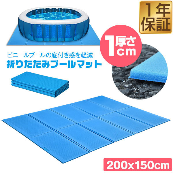 ビニールプール用 折りたたみプールマット 幅200cm×奥行150cm×厚さ1cm 下敷きマット プール下マット デコボコ軽減 厚手 ケガ防止 滑り止め 1年保証 送料無料