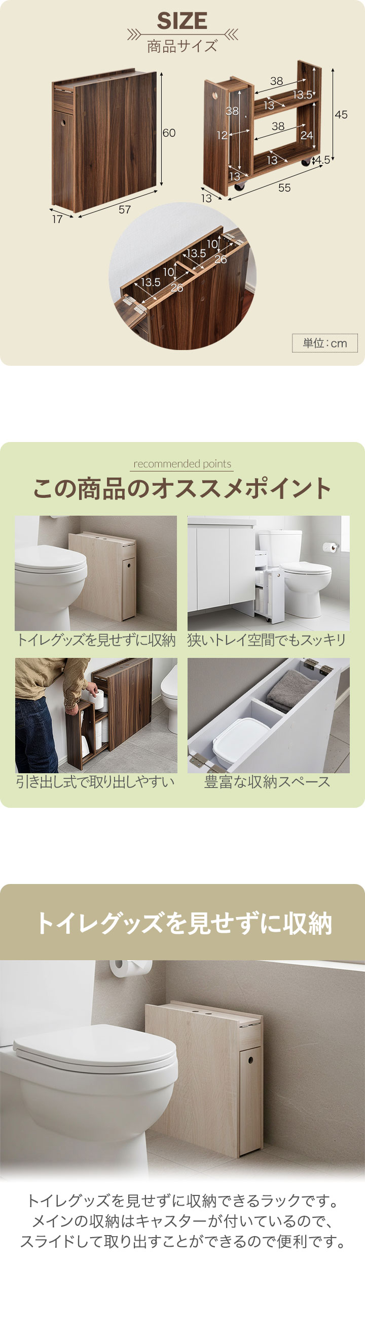 トイレ収納 奥行17cm 幅57cm トイレラック スリム 薄型 引き戸 おしゃれ スライド 引き出し サニタリー 掃除用具 洗面所 北欧 安い 1年保証 送料無料