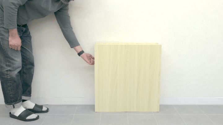 奥行17cmのスリム設計で狭いスペースに設置可能。メインの収納はキャスターが付いているので、スライドして取り出すことができるので便利。