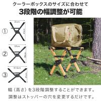 クーラーボックスのサイズに合わせて幅を3段階調整することができます。また幅を変えることで高さも変わるので、高さを調整したい時も応用できます。