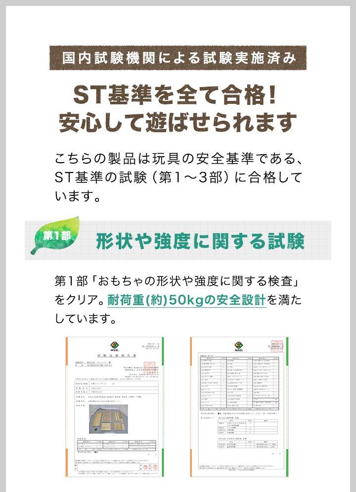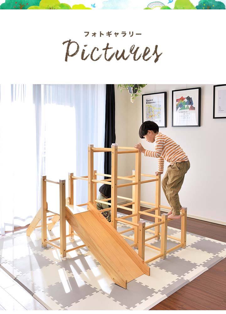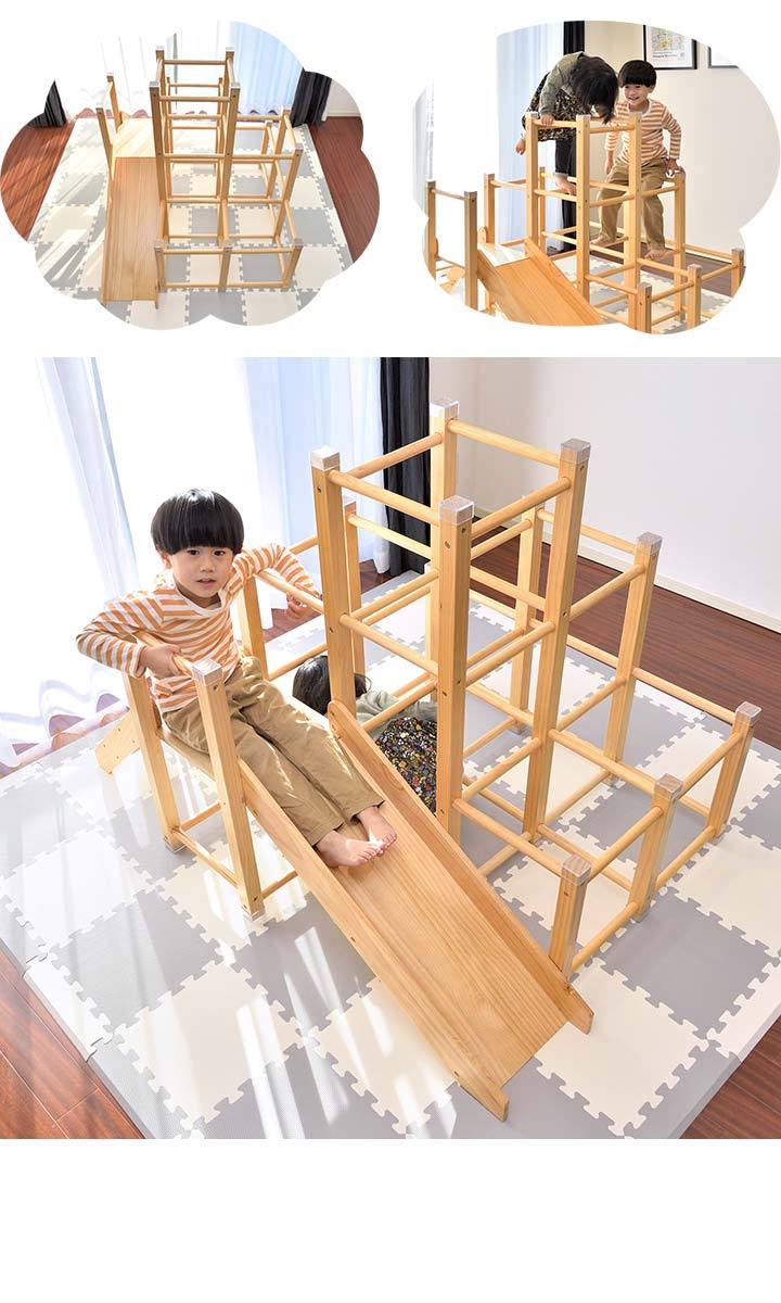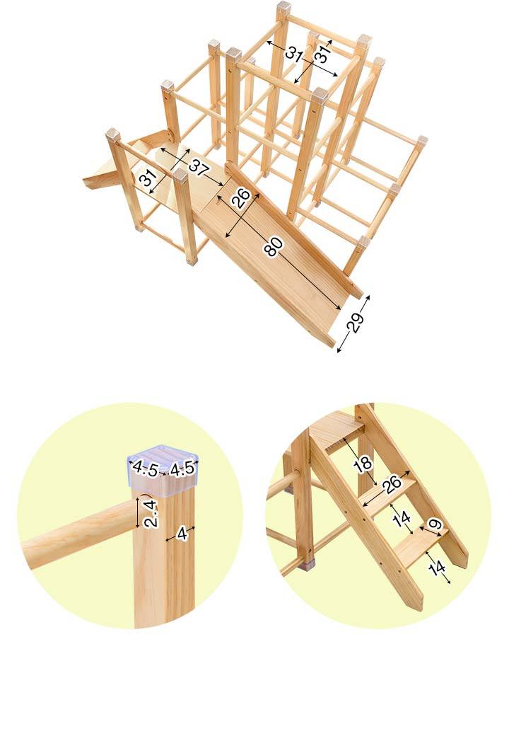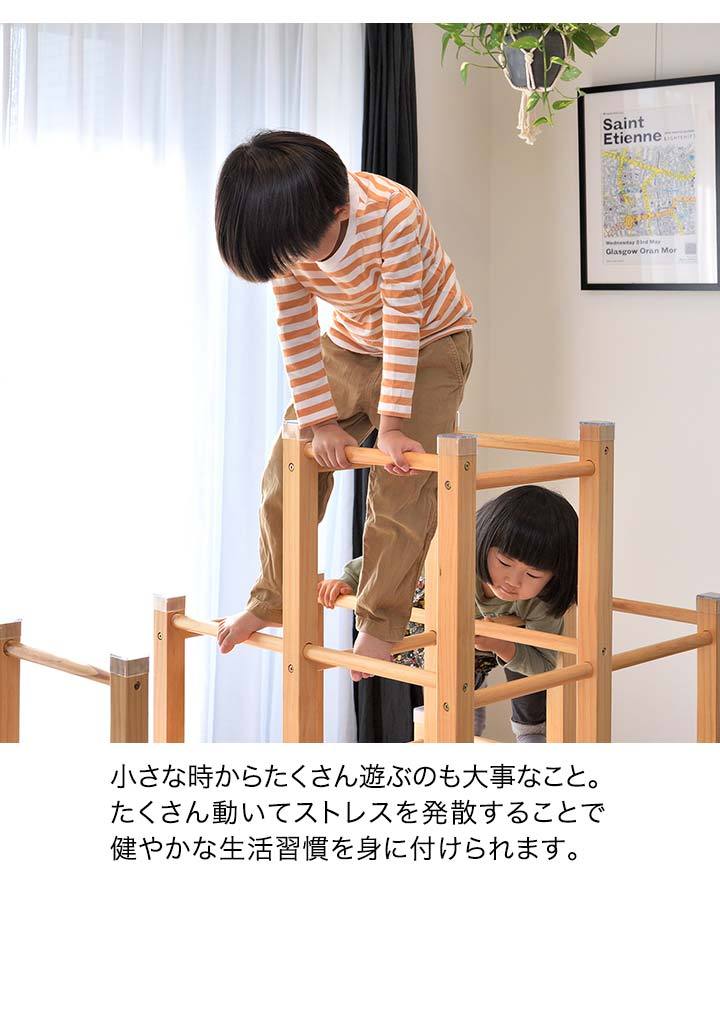 | 特記事項: ※絨毯の上など不安定な場所に置かないでください。転倒してケガや破損の原因になります。 ※本製品は室内専用です。屋外で使用しないでください。破損の原因になります。 ※火のそばに近づけて設置しないでください。火災の原因になります。 ※本体を水につけたり、水のかかる場所で使用しないでください。カビ・変色・変形の原因になります。 ※お手入れに塩素系・酸性タイプ等の洗剤は絶対に使用しないでください。カビ・変色したり、有毒ガスの発生により健康を害す事があります。 ※3人以上で同時に乗らないでください。 ※お子様がご使用の際は、けがをしたり、事故が起きないよう、必ず保護者の方が付き添い、目を離さないようご注意ください。 ※ご使用前、ご使用後は必ず点検を行ってください。万が一破損や異常があった場合は使用を控えてください。 ※荷重の負荷が大きい踊り場部分のみ、強度の有るプライウッドを使用しています。プライウッドは薄くスライスした木材を交互に貼り合わせているので、一枚板の無垢材よりも高い強度があります。 |