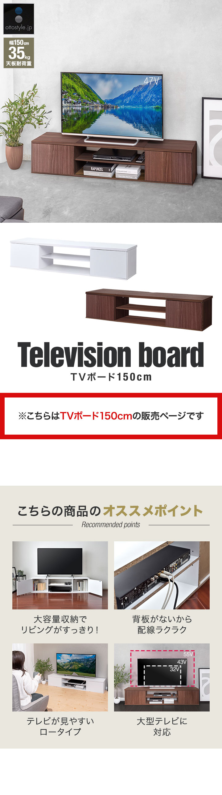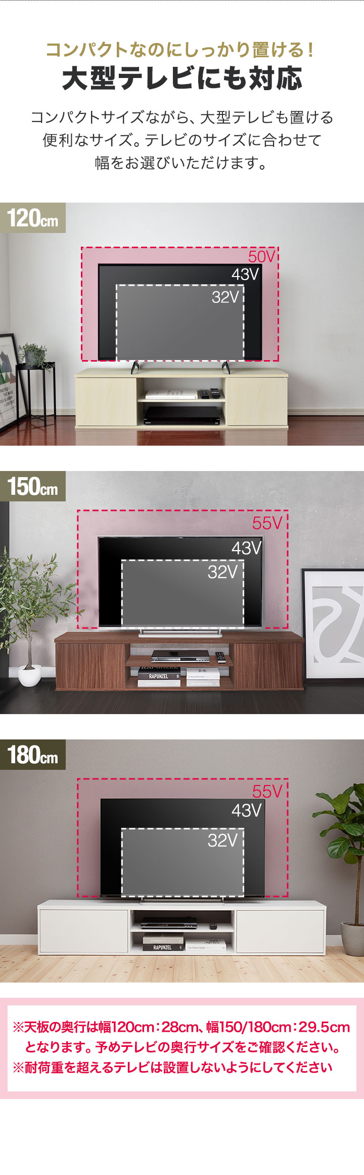 置けるテレビのサイズは55Vまで対応。