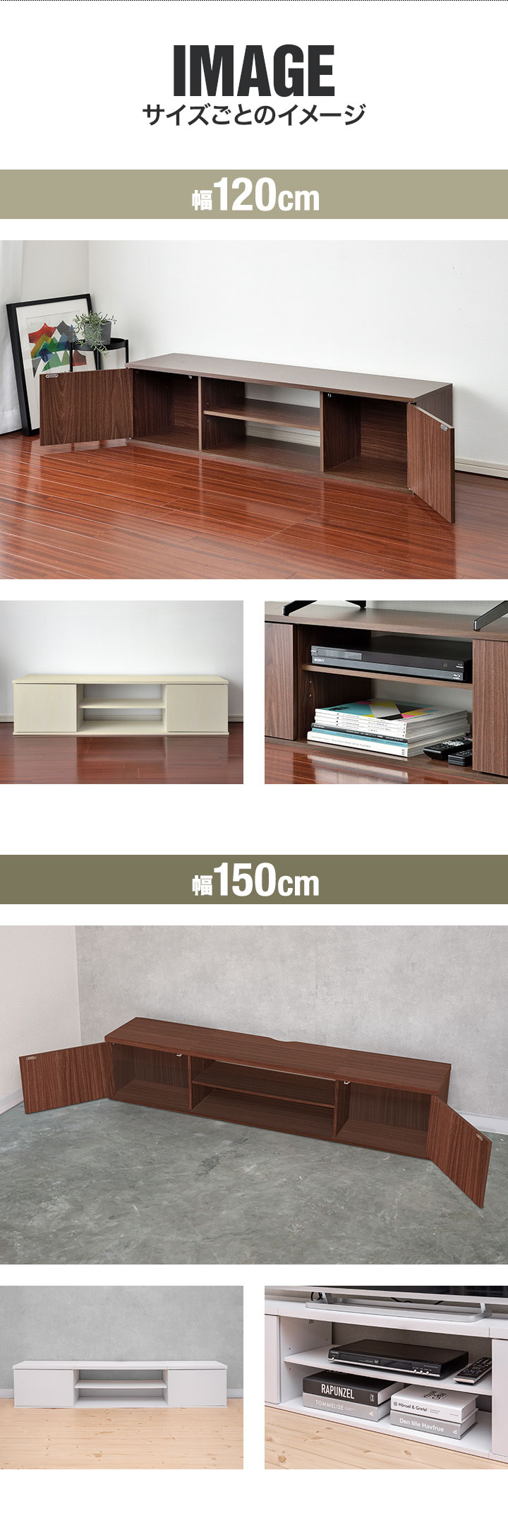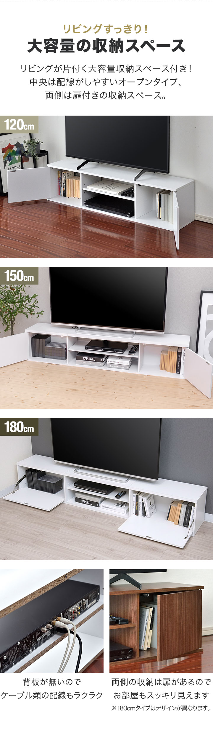 幅150cmサイズで充分な収納力!
