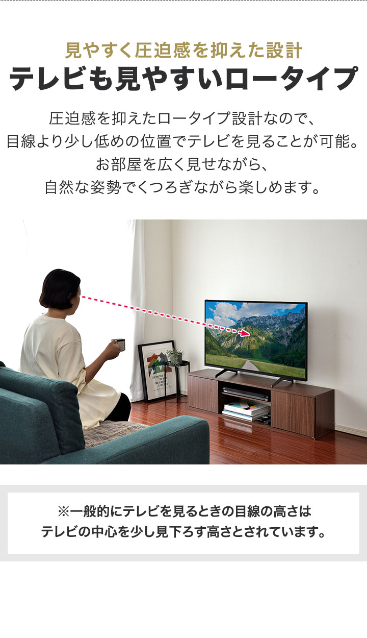 高さ31cmとロータイプなので、目線より少し低めの位置でテレビを見ることが可能。