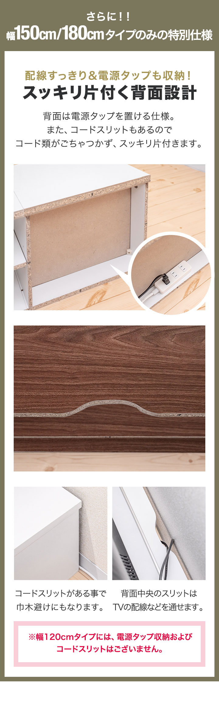 配線すっきり&電源タップも収納!スッキリ片付く背面設計