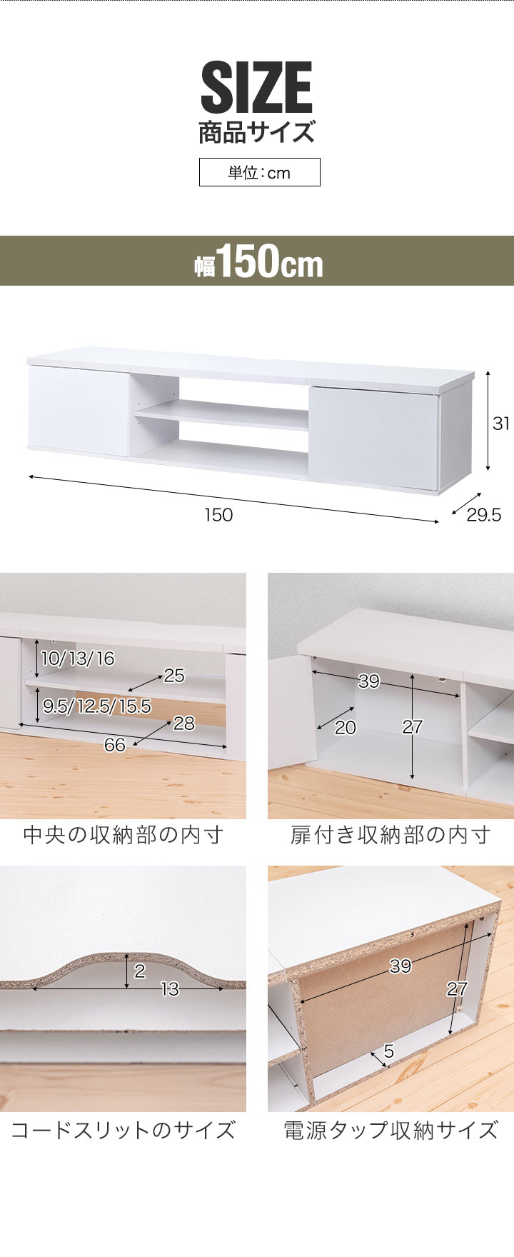 (約)幅150cm×奥行29.5cm×高さ31cm