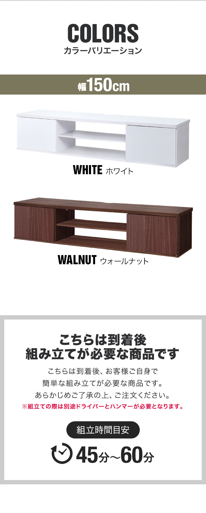 組立ての際は別途ドライバーとハンマーが必要となりますので予めご用意下さい。