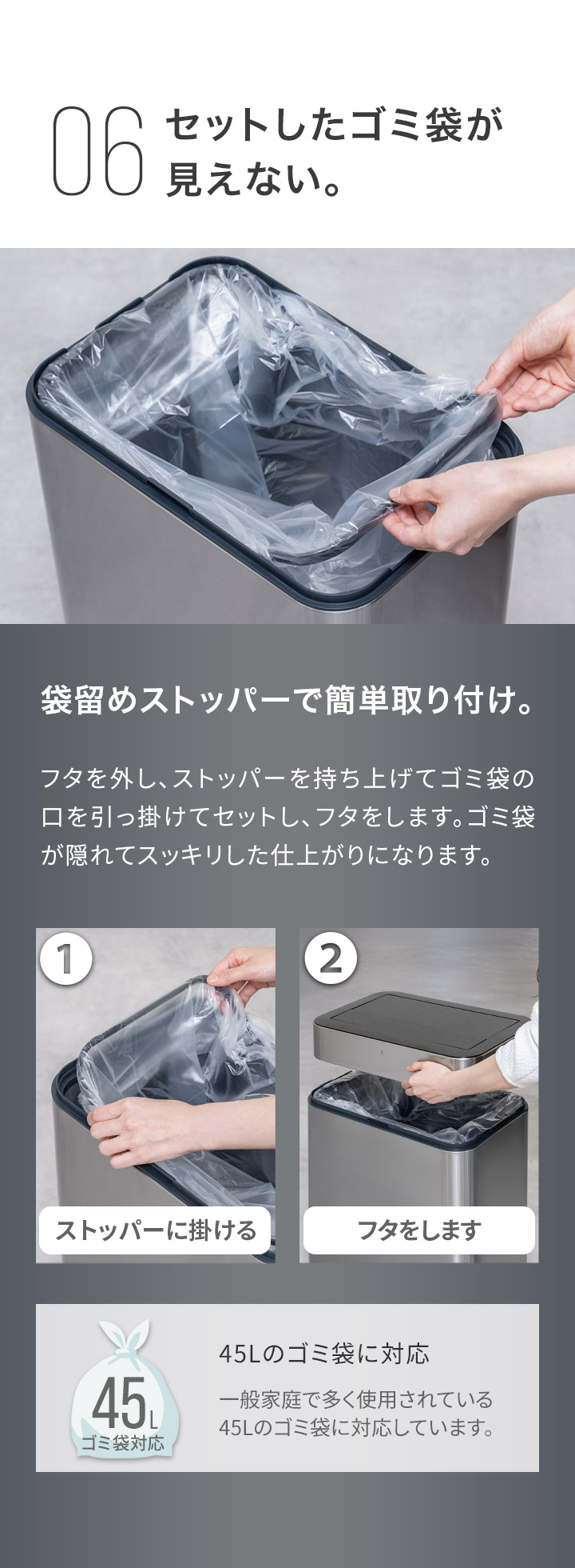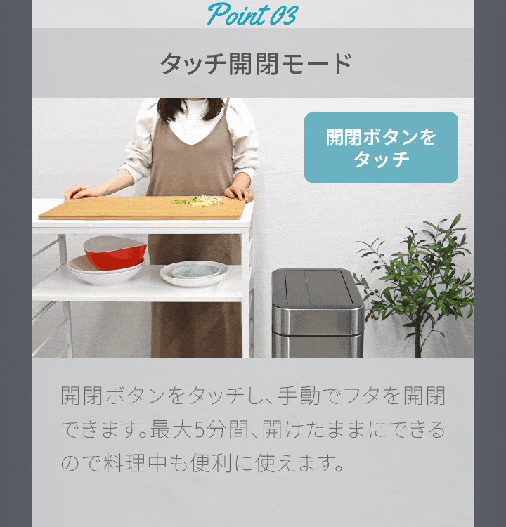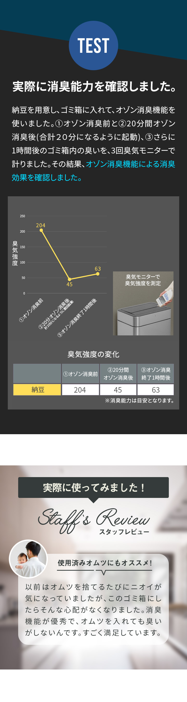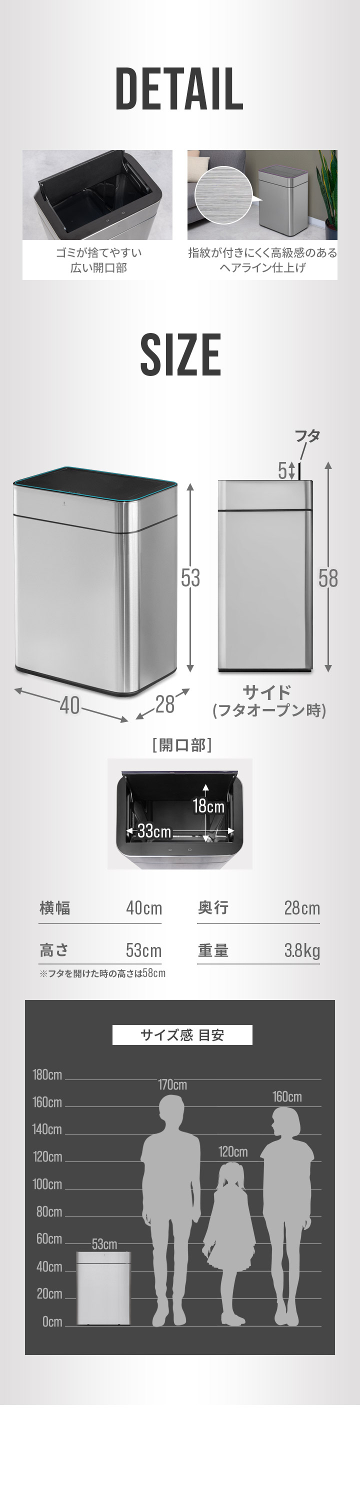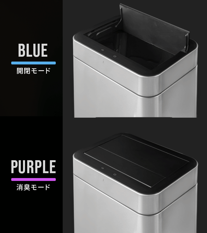 | 商品詳細(オゾン消臭機能付き 人感センサー中央開閉式ステンレスごみ箱 50L) |