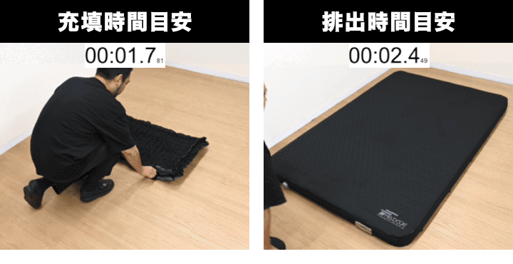 キャンプマットは厚さ10cmで、 高密度ウレタンフォームを使用。クッション性に優れ、 キャンプ時の地面のゴツゴツも解消します。