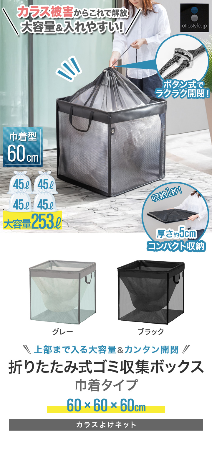 | 容量: (約)253L ※45Lのゴミ袋4個が収納目安になります。 |