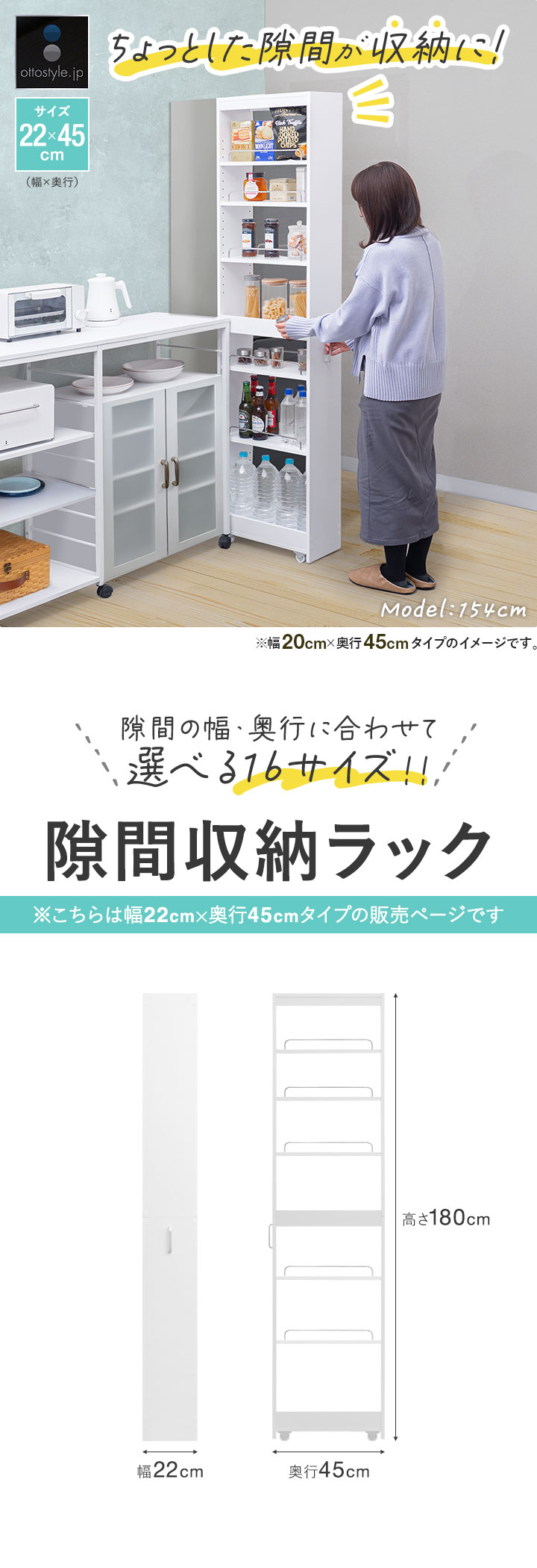 | サイズ: (約)幅22cm×奥行45cm(46cm※ハンドル含む)×高さ180cm |